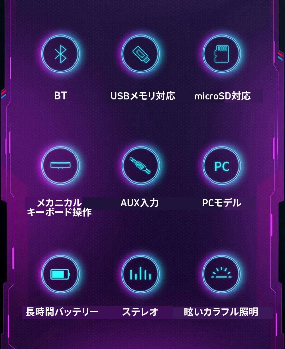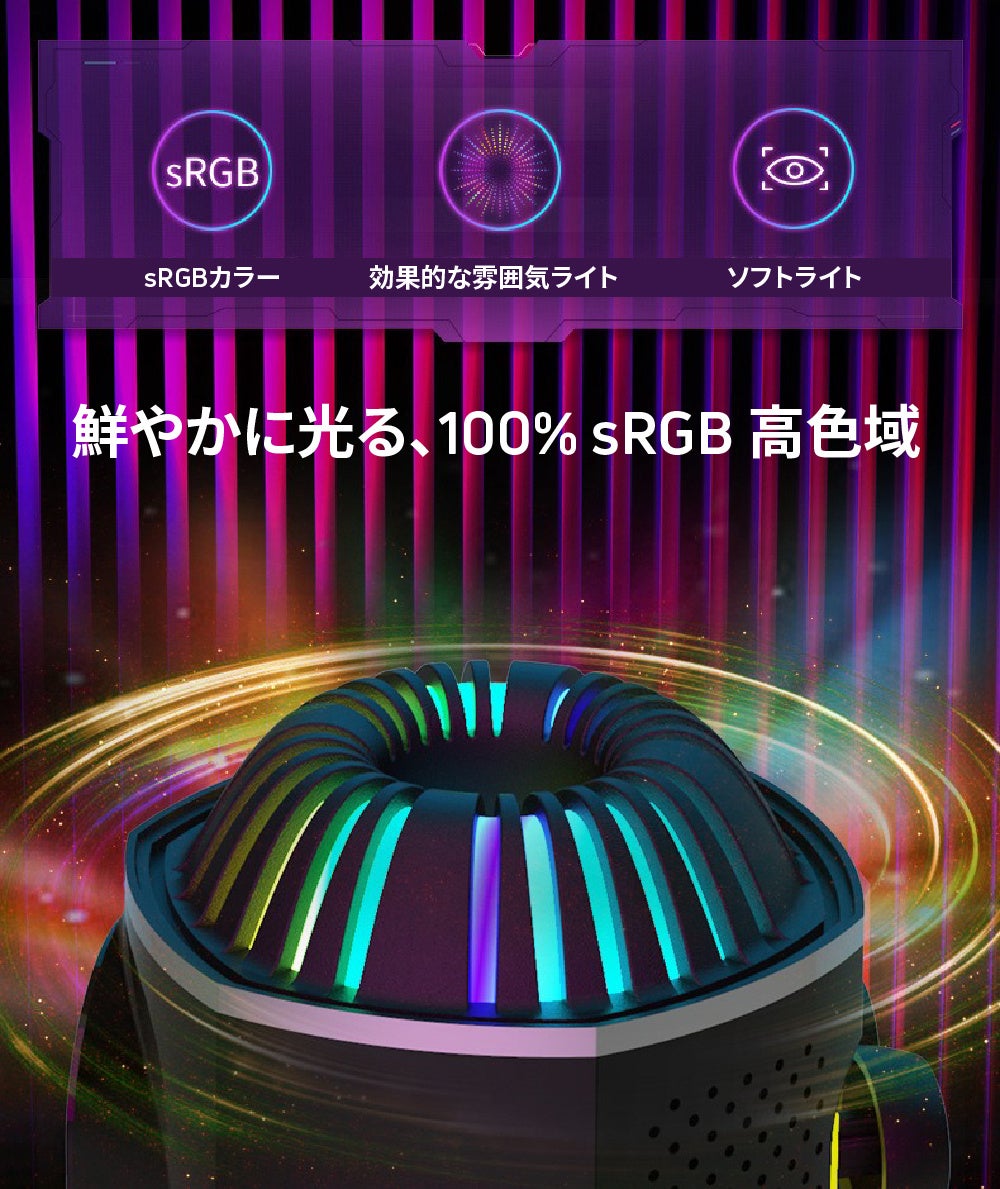 - 臨場感のあるサウンドと美しい照明効果で、ゲームや部屋の雰囲気を盛り上げよう