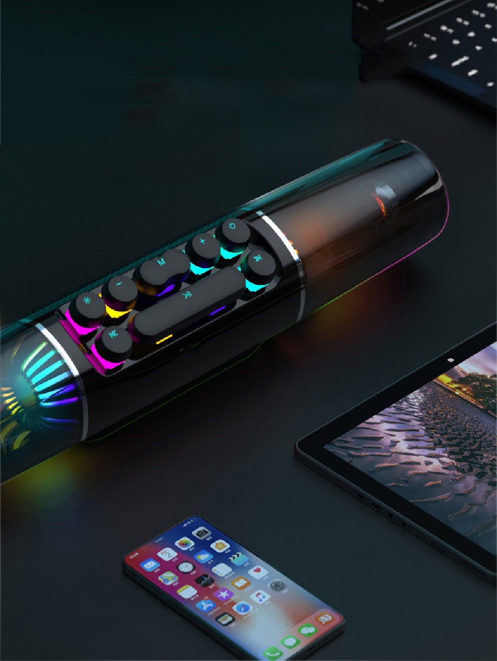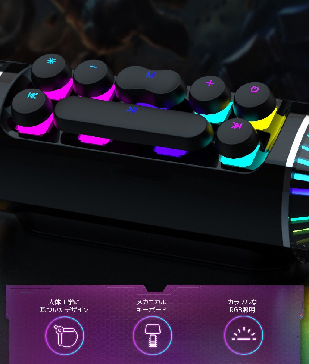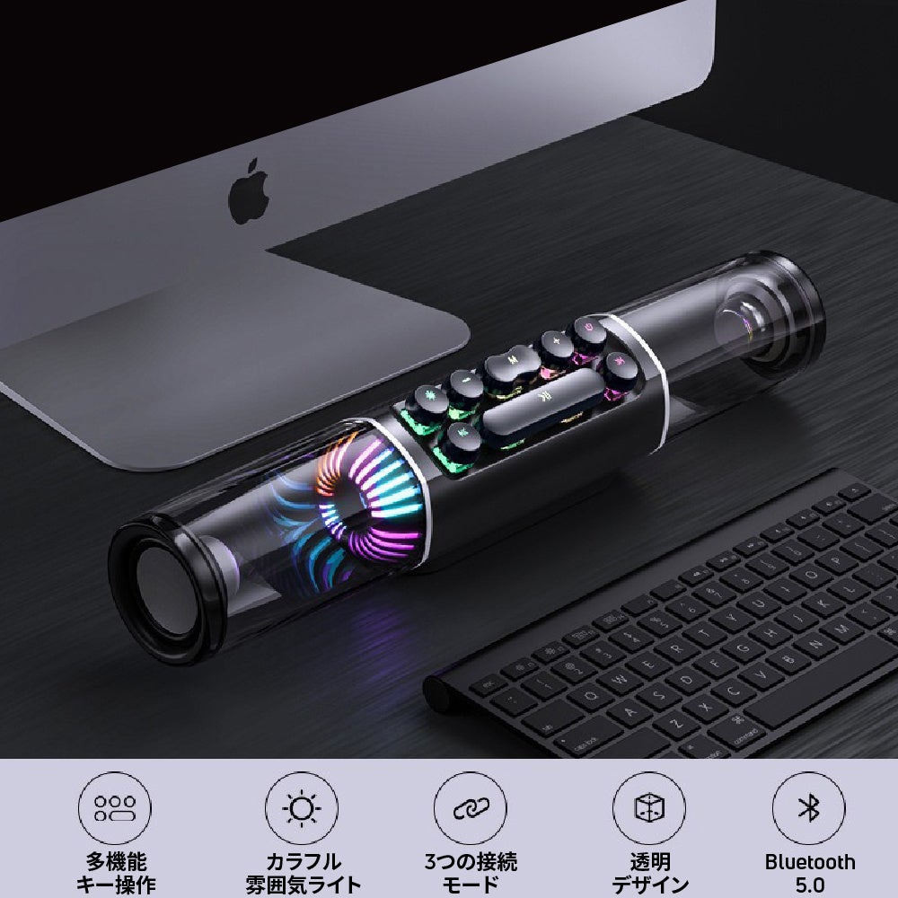美しい照明効果と音質で、ゲームや音楽再生に最適なポータブルスピーカーである。