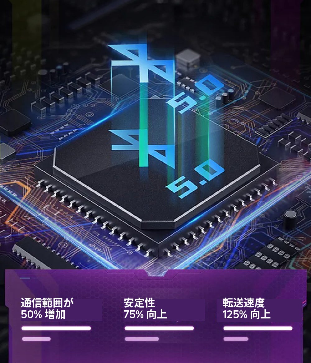 Bluetooth 5.0のチップ搭載によって、ポータブルにどこでもワイヤレス接続が便利にお使いいただけます。