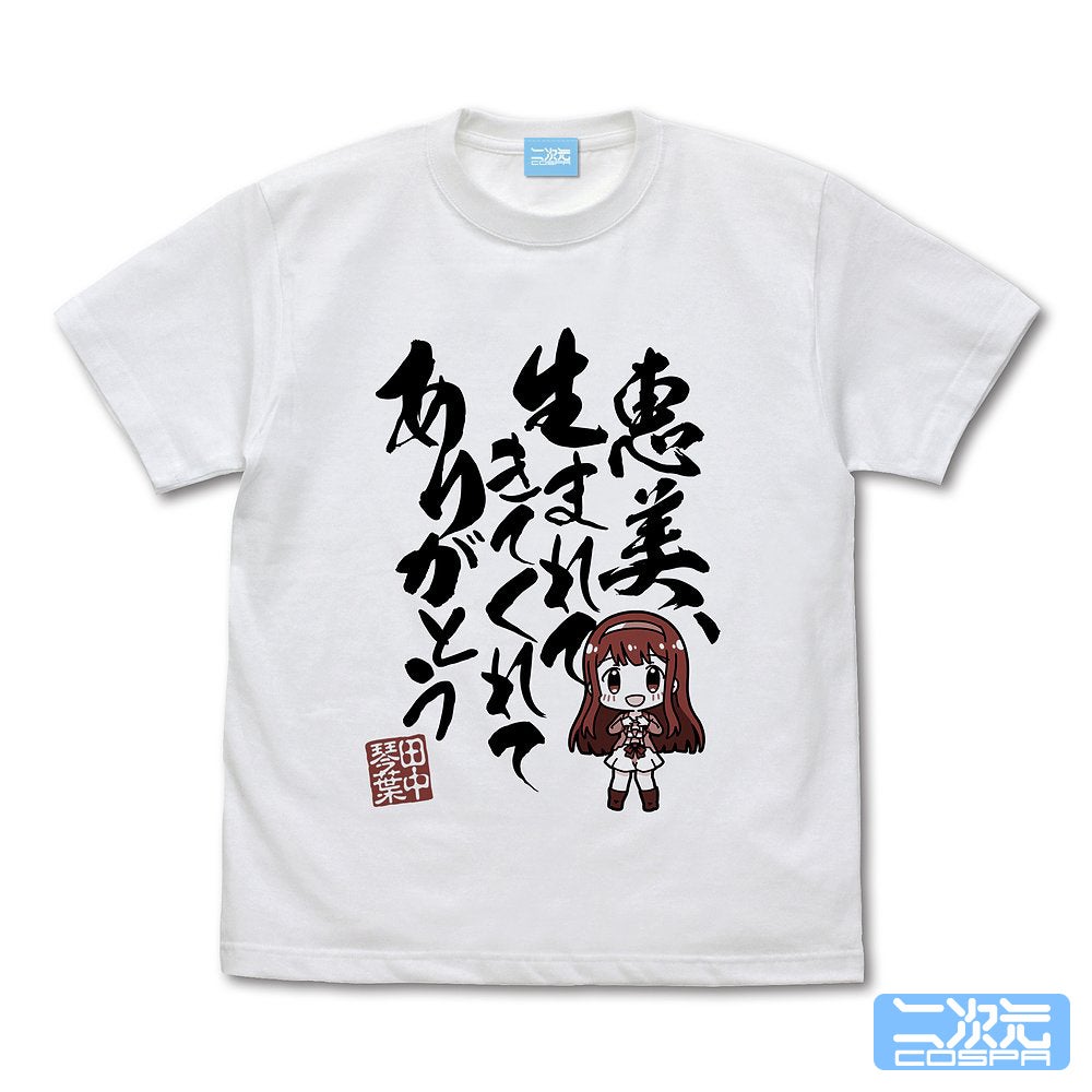 田中琴葉のTシャツには「恵美、生まれてきてくれてありがとう」というメッセージがプリントされており、感謝の気持ちを伝えることができます。