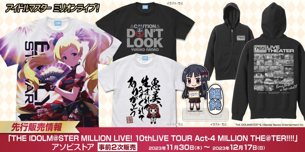 - 『アイドルマスター ミリオンライブ!』のイベント〈THE IDOLM@STER MILLION LIVE! 10thLIVE TOUR Act4 MILLION THE@TER!!!!〉に向けて、新グッズが登場