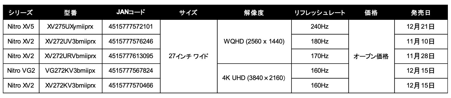 日本エイサー株式会社は、ゲーミングモニター市場向けに新製品を発売します。