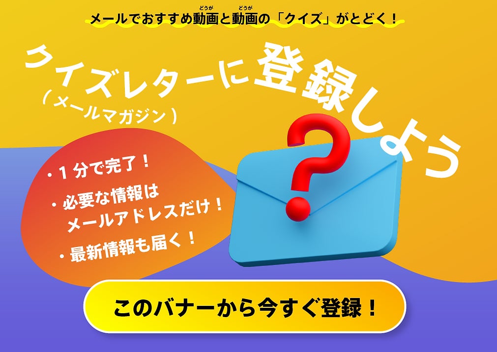 また、メールアドレスを登録すると、定期的に動画に関するクイズが届く「クイズレター」も配信されます。
