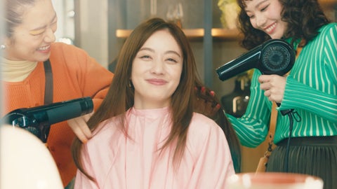 CMでは、谷さんが美容室に来店し、施術を受けながら楽しそうな表情を見せます。
