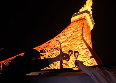レストランバスの中で和食コース料理やお酒を楽しみながら、東京タワーやレインボーブリッジなどの観光スポットや川崎工場夜景、ドローンショーを楽しむことができます。