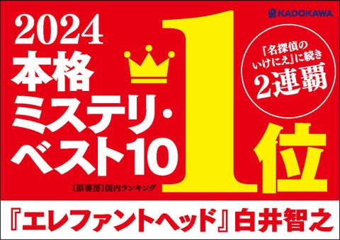 株式会社KADOKAWAから発売された白井智之の小説『エレファントヘッド』が、2024年のミステリランキングで第1位を獲得しました。