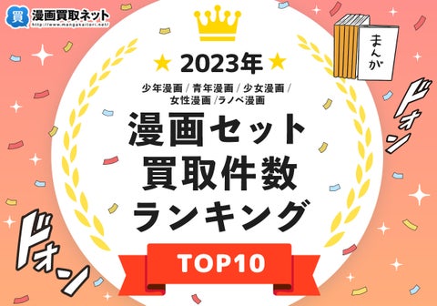 - 2023年1月1日から11月30日までの漫画セットの買取件数ランキングTOP10をご紹介します。