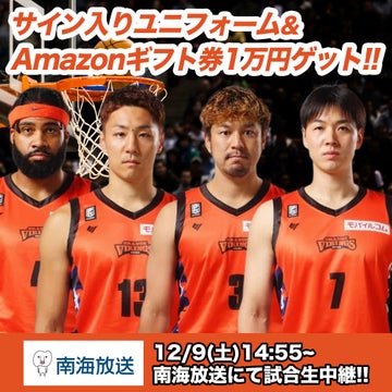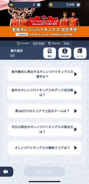 - 予想内容は後半最初の得点選手、オレンジバイキングスの後半のダンク成功数、第3Qで上回るチームのスコア、試合のオレンジバイキングスの得点王、最終スコア