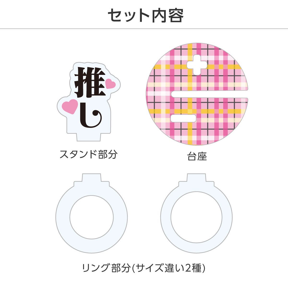 このリングは、台座付きでアクリルキーホルダーやアクリルスタンドをセットすることができ、スマホで撮影ができる便利な推し活グッズです。