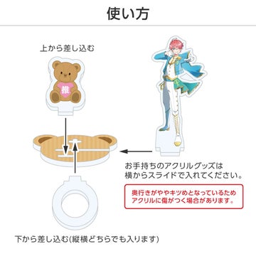 厚さ3mmのアクリルグッズに対応しており、アクリルスタンドやアクリルキーホルダーをリングにセットすることができます。