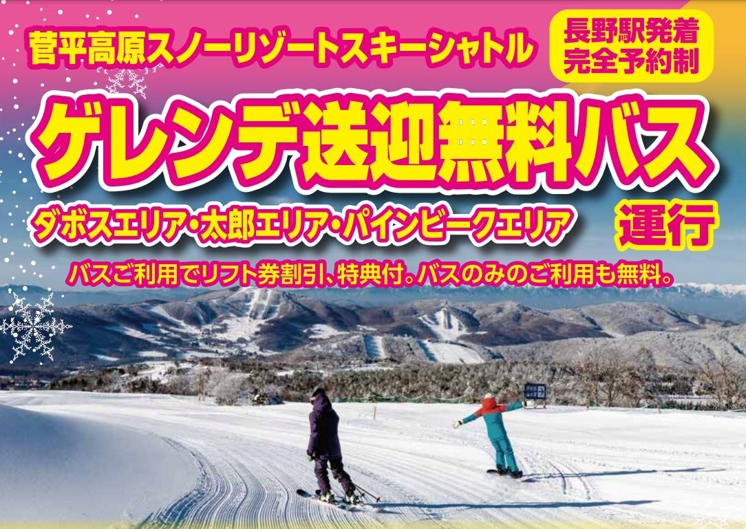 - 長野市からの無料シャトルバス運行あり、特別価格でリフト券購入可