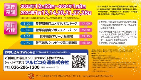 さらに、長野市からは無料のシャトルバスが運行され、シャトルバスを利用すると特別価格でリフト券を購入できます。