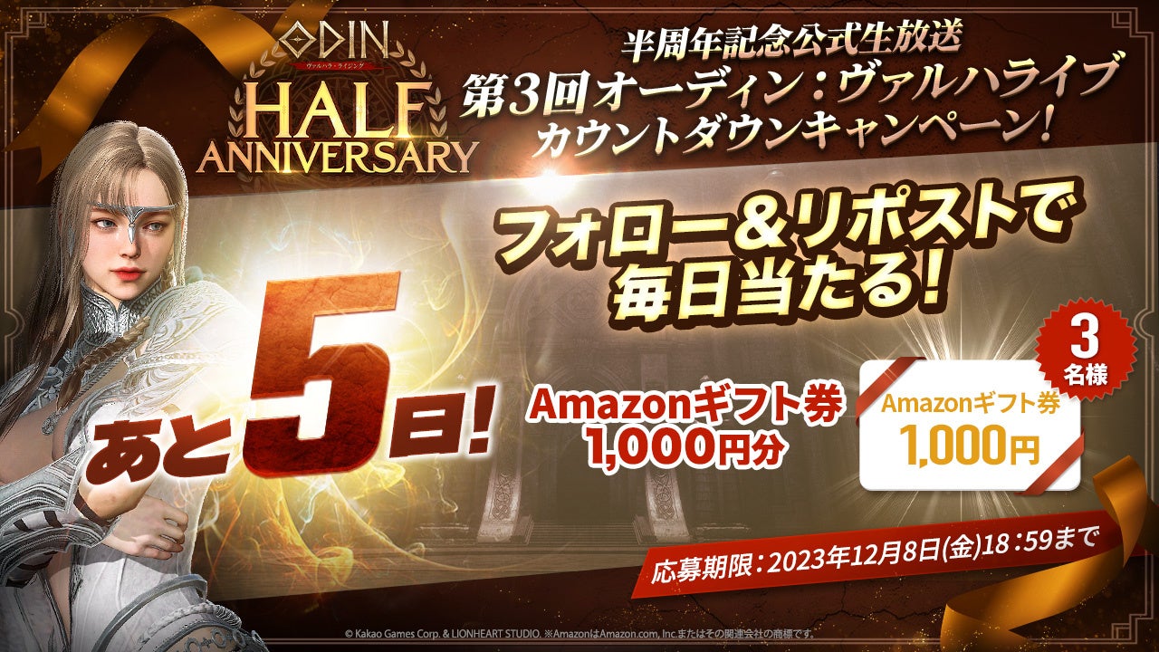 株式会社カカオゲームズは、北欧神話オープンワールドRPG『オーディン:ヴァルハラ・ライジング』の半周年記念公式生放送キャンペーンを発表しました。