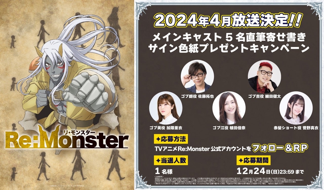 - 人気小説「Re:Monster」のTVアニメが2024年4月に放送開始