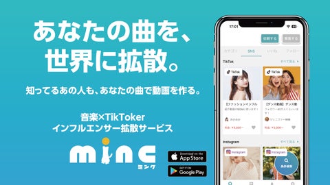 なお、mincは音楽アーティストとインフルエンサーのマッチングプラットフォームであり、インフルエンサーに楽曲を使用した動画を投稿してもらうことでメディア露出を高めることができます。
