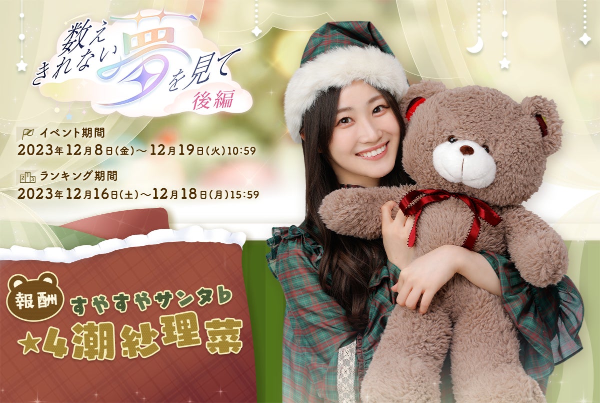株式会社ソニー・ミュージックソリューションズは、スマートフォンゲームアプリ『日向坂46とふしぎな図書室』にて、12月8日からクリスマスイベント「数えきれない夢を見て・後編」を開催します。
