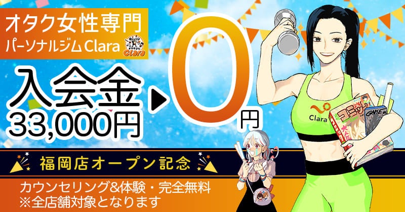 福岡・天神にあるオタク女性専門のパーソナルトレーニングジム「Clara」が新店舗をオープンしました。