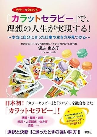 保志 吏衣子の初の著書「カラットセラピー」は、日本初のカラーセラピーとタロットを組み合わせた方法を紹介しています。