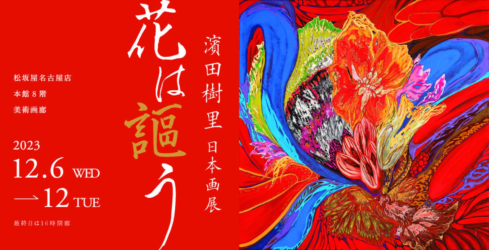 『濱田樹里 日本画展 花は謳う』は2023年12月6日から12月12日まで、松坂屋名古屋店の本館8階美術画廊で開催されています。
