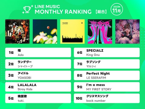 • 11月の月間ランキング1位はAdoの「唱」