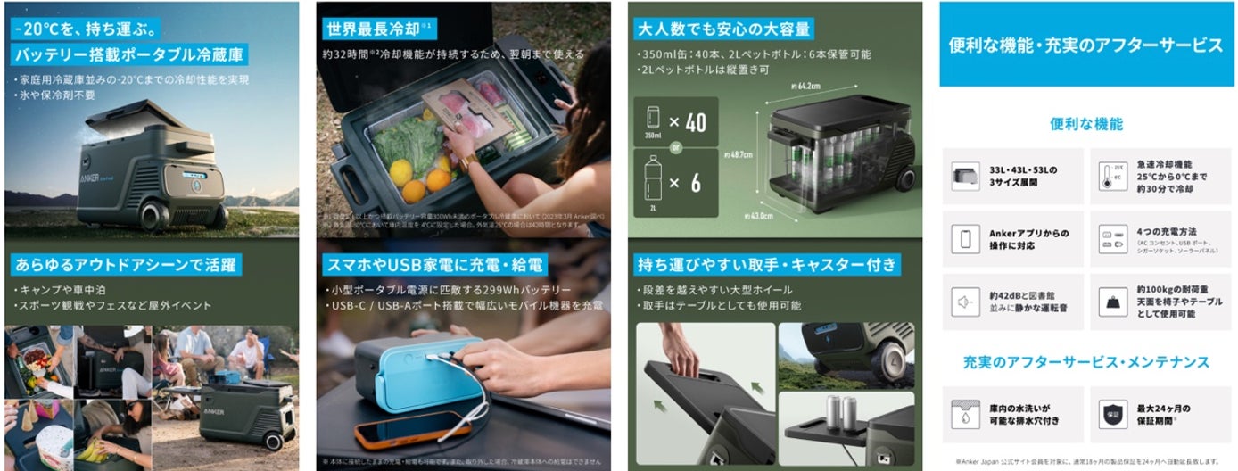 ※2 容量30L以上かつ搭載バッテリー容量300Wh未満のポータブル冷蔵庫において(2023年3月 Anker調べ)
