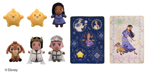 プライズにはアーシャ、スター、バレンティノ、マグニフィコ王、アマヤ王妃のキャラクターが登場し、かわいいマスコットやふわふわのブランケットなどが展開されます。