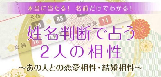 この占いでは、あなたと特定の人との恋愛相性や結婚相性を、お名前から鑑定します。
