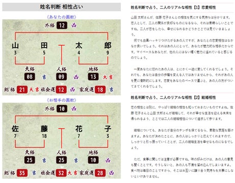 - 「うらなえる」で姓名判断の無料占いが提供されている
