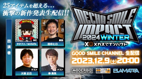 今年は冬と夏の年2回開催され、『メカスマインパクト2024 WINTER』では「MODEROID」「THE合体」に加え、新たに発表されたキャラクタープラモシリーズ「PLAMATEA(プラマテア)」からも商品化が発表されます。