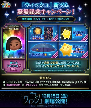 本日、『LINE:ディズニー ツムツム』には、ディズニー100周年記念作品『ウィッシュ』の主人公アーシャ役の声優、生田絵梨花さんのボイス付き新ツム「アーシャ」が登場しました。