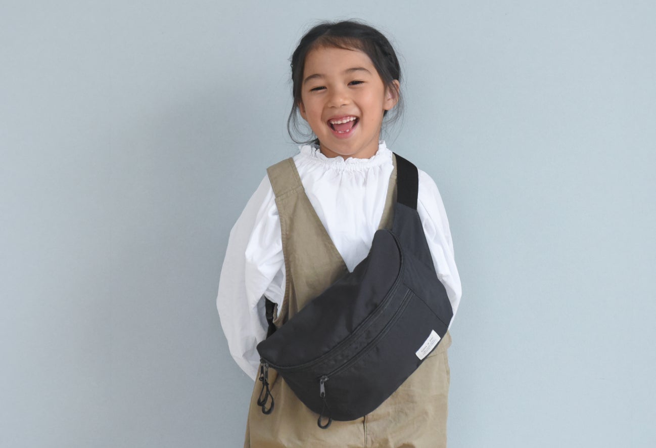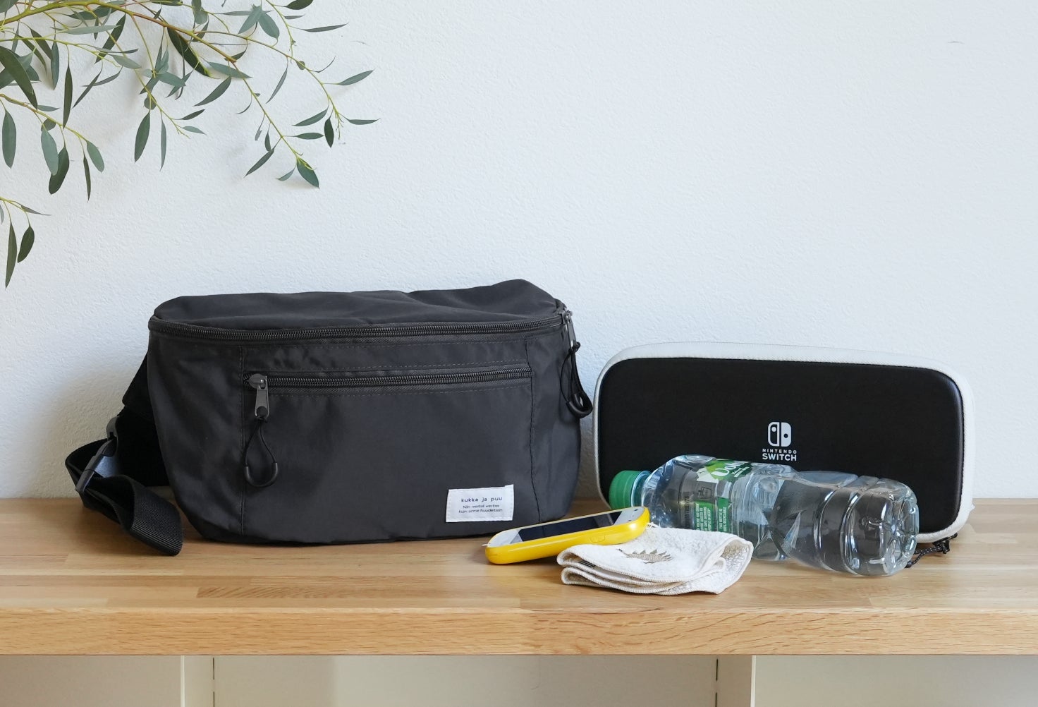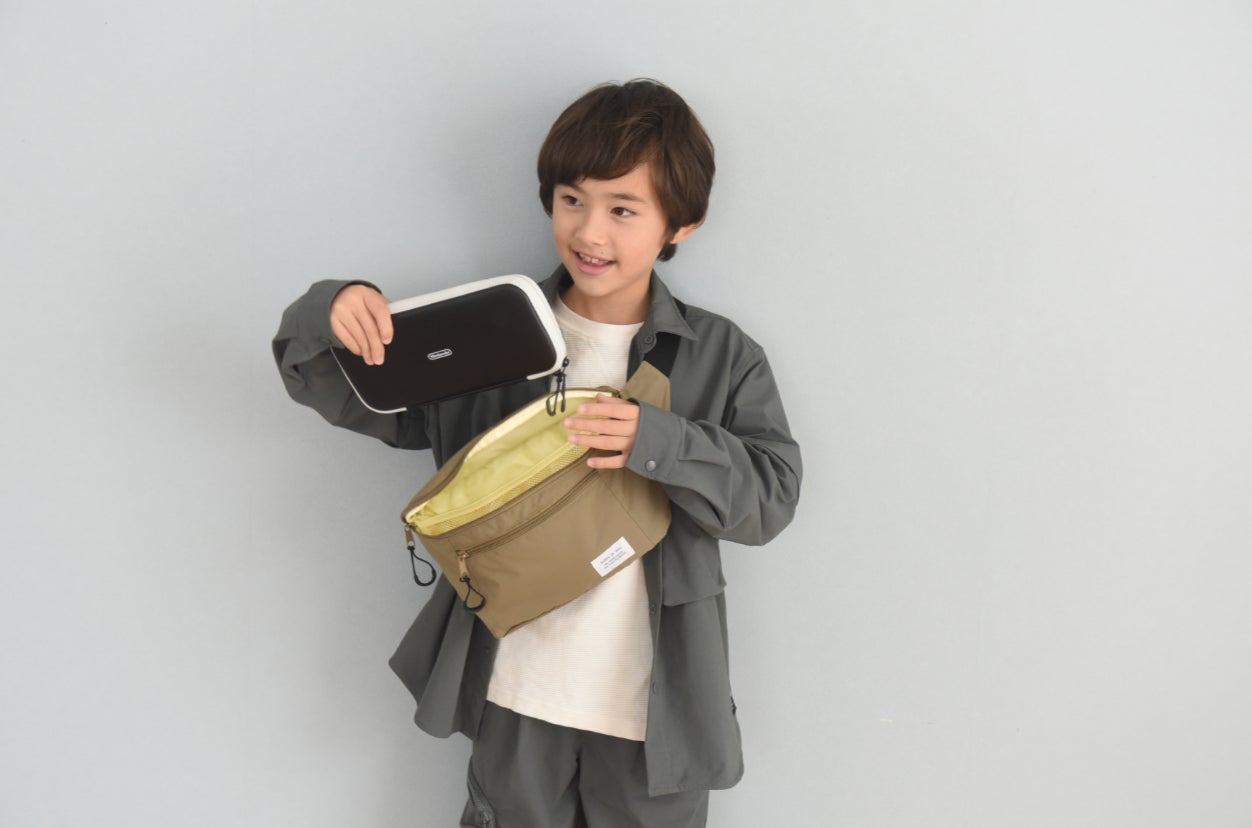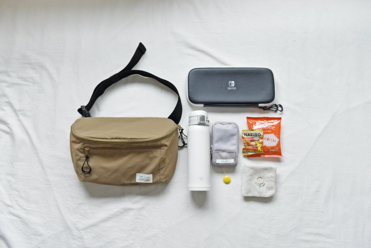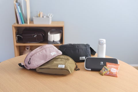 kukka ja puuのボディバッグは、ゲーム機や飲み物、お菓子などを収納できるサイズ感で、使いやすさにもこだわっています。