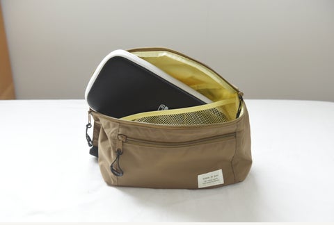 両手がフリーで動きやすく、ゲーム機もポーチごと収納できます。