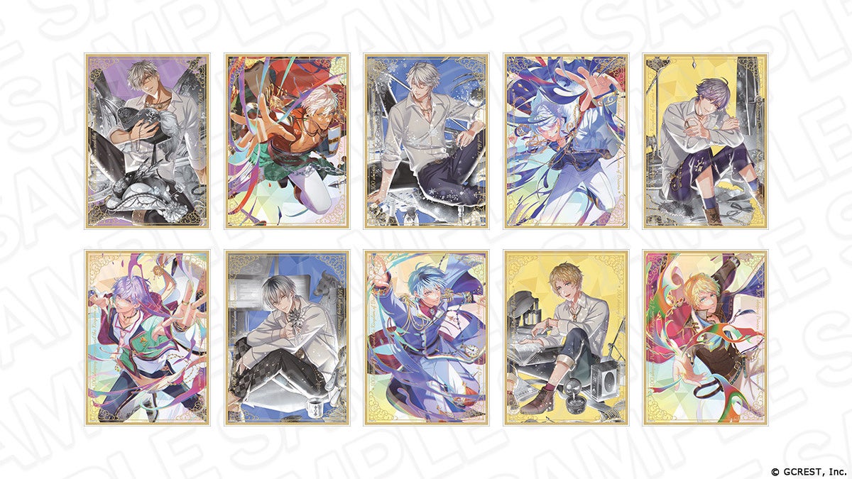 ホログラムカード、ダイカットステッカー、ミニ色紙、スタンドアート、マイクロファイバー、デカキーホルダー、デカアクリルスタンド、カンバッジ付きアクリルアート