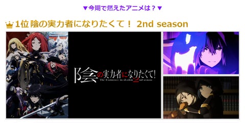 - 「陰の実力者になりたくて! 2nd season」が燃える作品として1位