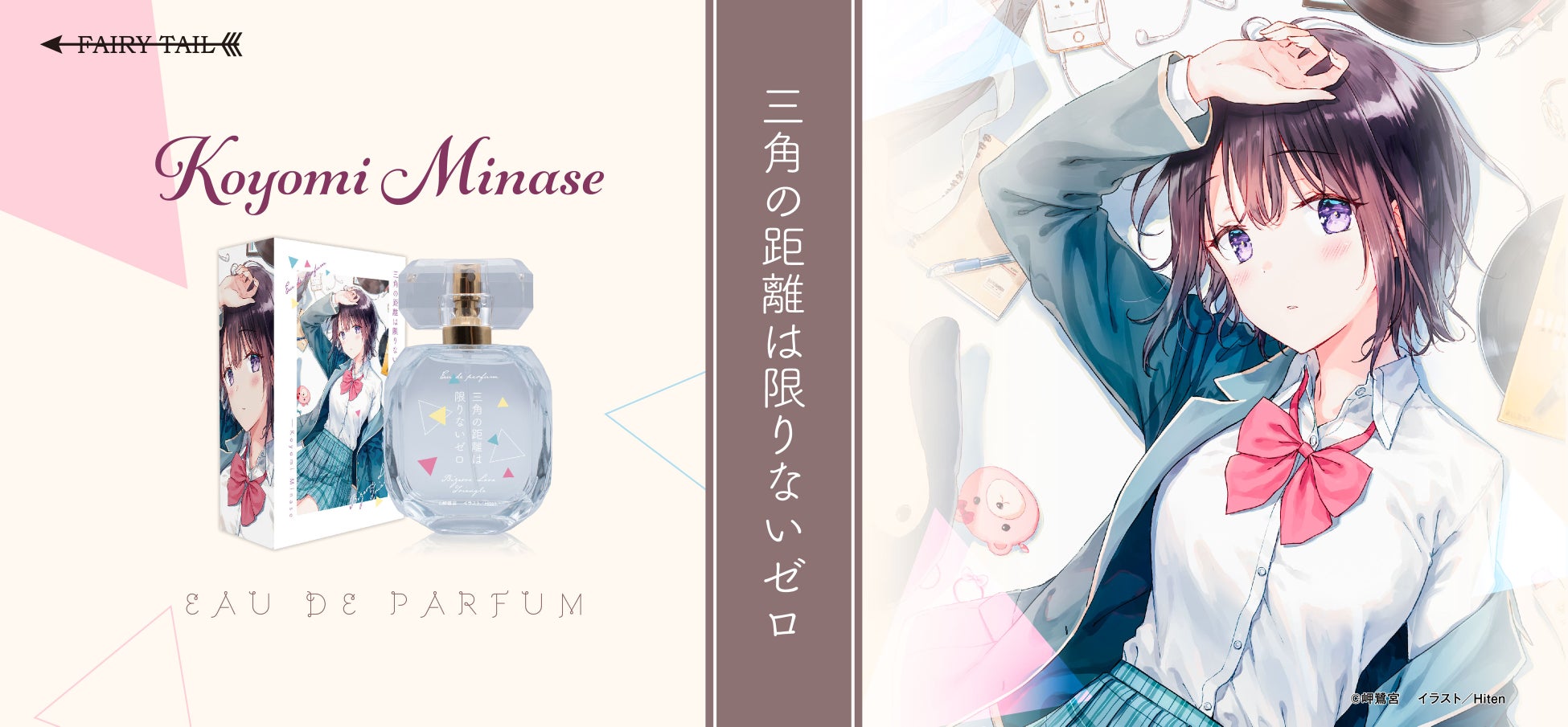 この作品をイメージした香水「三角の距離は限りないゼロ オードパルファム 水瀬暦美」は、フレッシュで淡いフローラルノートが特徴です。