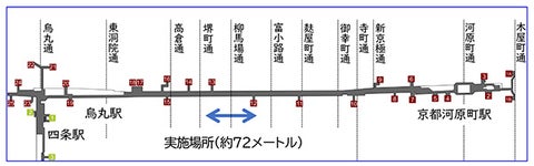 - 場所は四条通地下道の12番出口から13番出口までの約72メートル