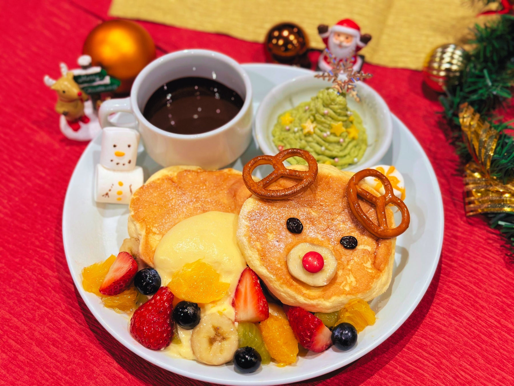 クリスマスメニューでは、トナカイをイメージしたぱんケーキやホットチョコレートが楽しめます。