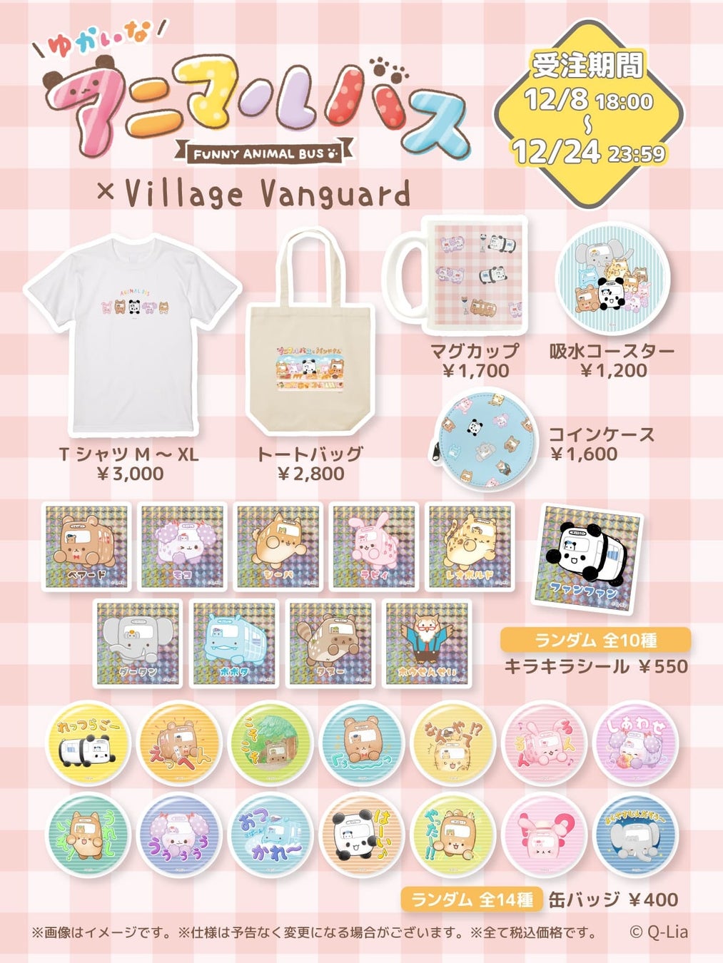 - 2023年12月8日からヴィレッジヴァンガード限定のアニマルバスグッズがオンラインストアで発売
