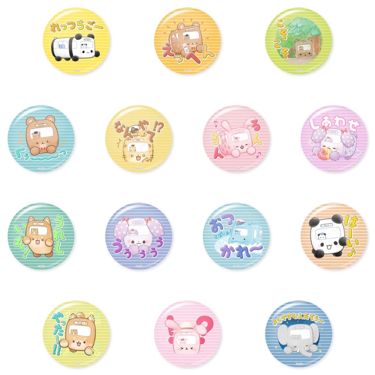 - Tシャツ、トートバッグ、コインポーチ、缶バッジ、キラキラシール、マグカップ、吸水コースターなどのアイテム揃い