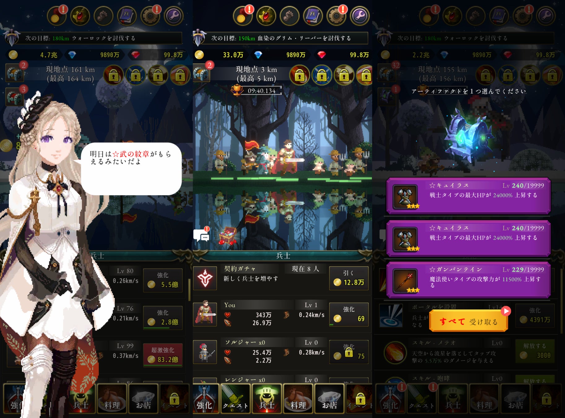 - アーティファクトを集めて兵士を強化し、進軍する