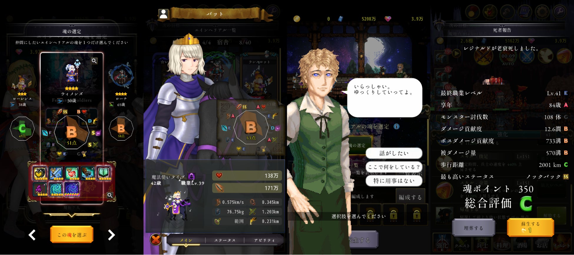 兵士たちを強化して魔王を倒すループ無限進行型のゲームです。
