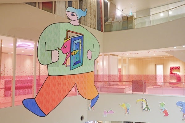 施設内のアートデコレーションも行われ、展示では「歩く」をテーマにしたキャラクターたちが愛を表現しています。