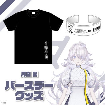 バースデーグッズには、月白累の衣装デザインをモチーフにしたTシャツとアクリルバングルが登場します。