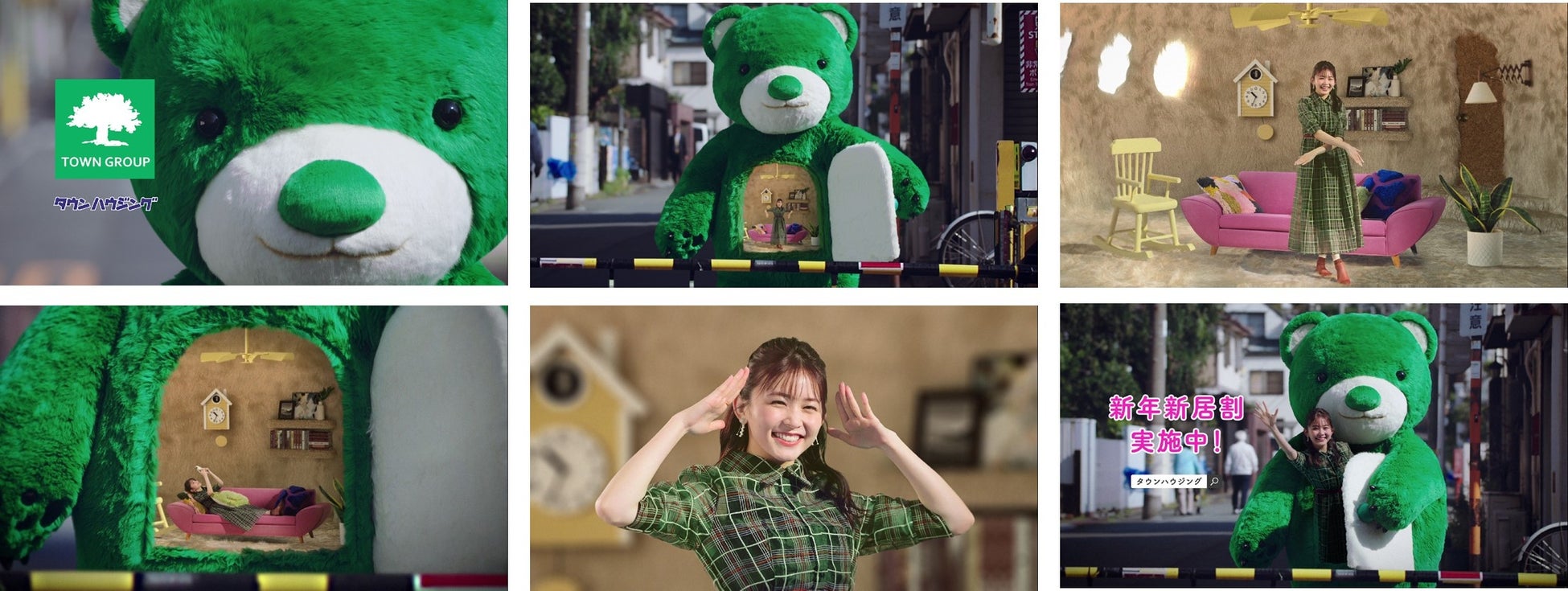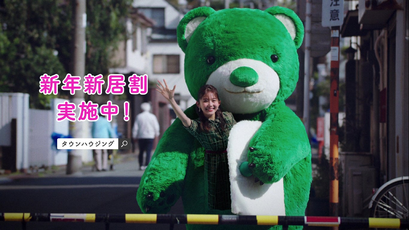 このTV CMは、タウンベアと久間田琳加さんのストーリーを描いています。