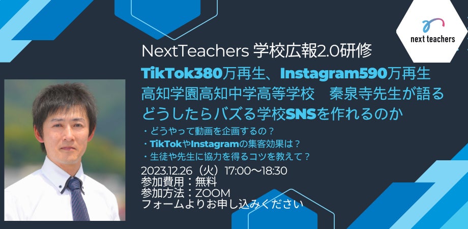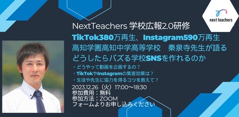 このセミナーは、TikTokやInstagramの運用に興味がある学校や既に運用を始めているが課題を感じている学校、生徒を巻き込んでの運用を検討しているが体制作りに迷っている学校の広報担当者にとって有益な内容です。