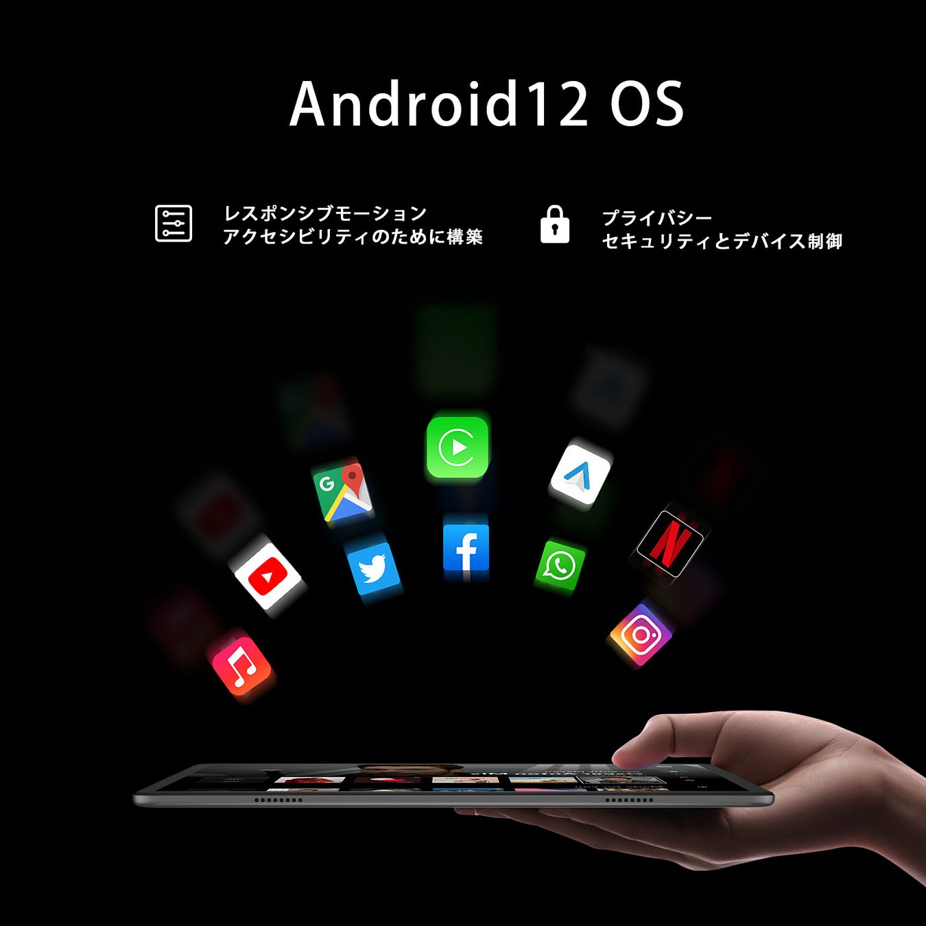 このタブレットは、新しいAndroid 12 OSを搭載し、より個性的で安全なシステム体験を提供します。