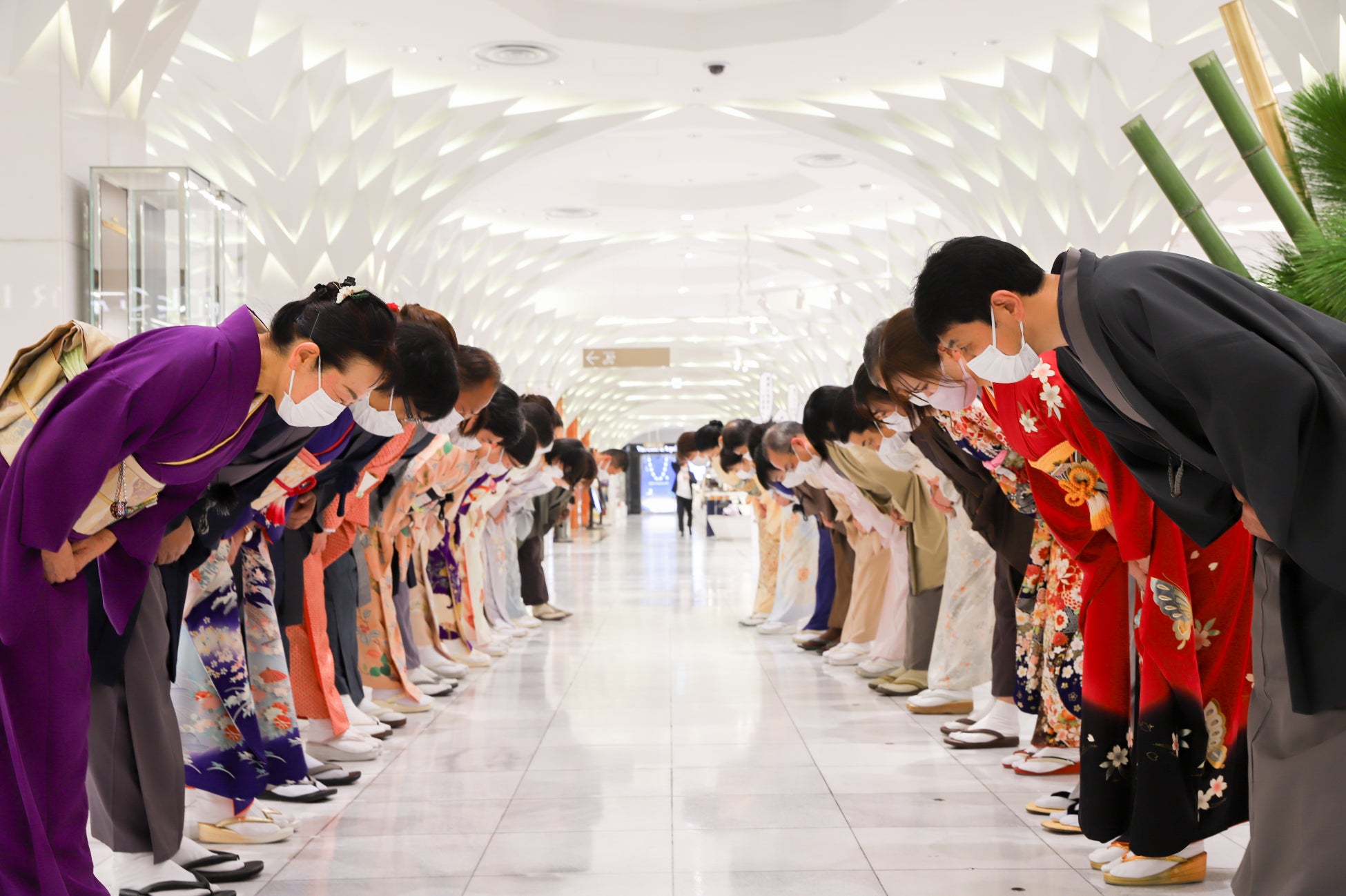 従業員は着物でお出迎えし、ダンスチームアバンギャルディ>のパフォーマンスや箱根駅伝のトークショーなどのイベントも行います。