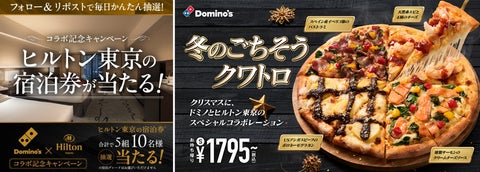 ドミノ・ピザとヒルトン東京が初めてコラボレーションし、ペア宿泊券が当たるプレゼントキャンペーンを開催します。