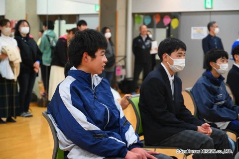 - 生徒たちは試合後に選手との交流イベントで質問を楽しく交わす