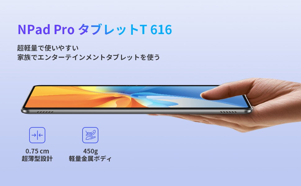 【6600mAh大容量+5/13MPカメラ+ 軽量10インチタブレットPC+GMS】 6600mAhの大容量のバッテリーを搭載し通勤途中や出張時でも映画や、電子書籍やドラマ、音楽鑑賞などを長時間安心してご利用いただけます。 1300万画素のリアカメラと500万画素のフロントカメラで、美しい風景や会話の動画を撮影することも可能です。 10.4インチタブレットPCはGoogleのGMS認証済み、Google Play ストアから全てのLINE / Netflix / YouTube /Facebook / Twitterなどお気に入りのアプリにアクセスできます。 NPad Pro は7.5mm の薄さ、ポータブルなオールメタルデザイン。 重さ440gなので、仕事・勉強・外出先など、持ち歩きにも便利です。より軽く、家中またはどこへでも持ち歩けるモバイルなタブレットです。デュアルMICマイク内蔵、とワイヤレス投影に対応、PSE & TELEC 認証取得